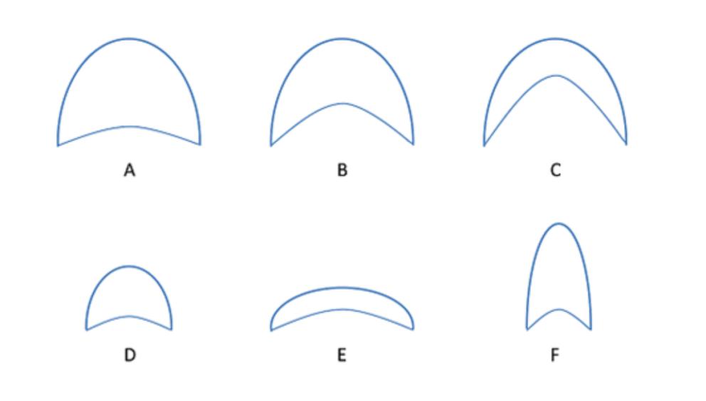 | A:正常气道吸气相横截面的形状;B:正常气道呼气相的横截面,此时气道膜壁向管腔内轻度凹陷;C:病理状态下,膜壁松弛,呼气相膜壁向管腔内过度凹陷,矢状面管径 < 吸气相50%;D:病变累及全部软骨,管腔呈圆周型缩小;E:病变累及软骨前壁,冠状面管径保持不变,管腔呈新月型狭窄;F:病变累及软骨两侧,管腔呈刀鞘样狭窄 图 3 中央气道狭窄的形态学分类 |