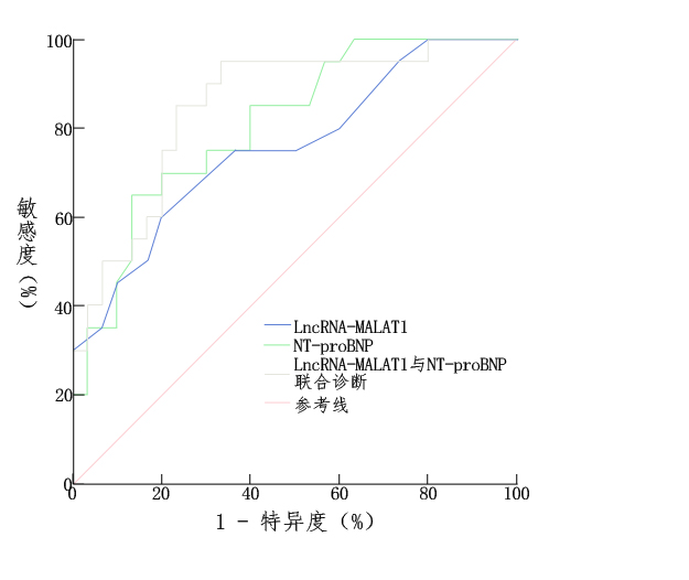 注:LncRNA-MALAT1为长链非编码RNA肺腺癌转移相关转录因子1,NT-proBNP为N末端B型钠尿肽前体 |