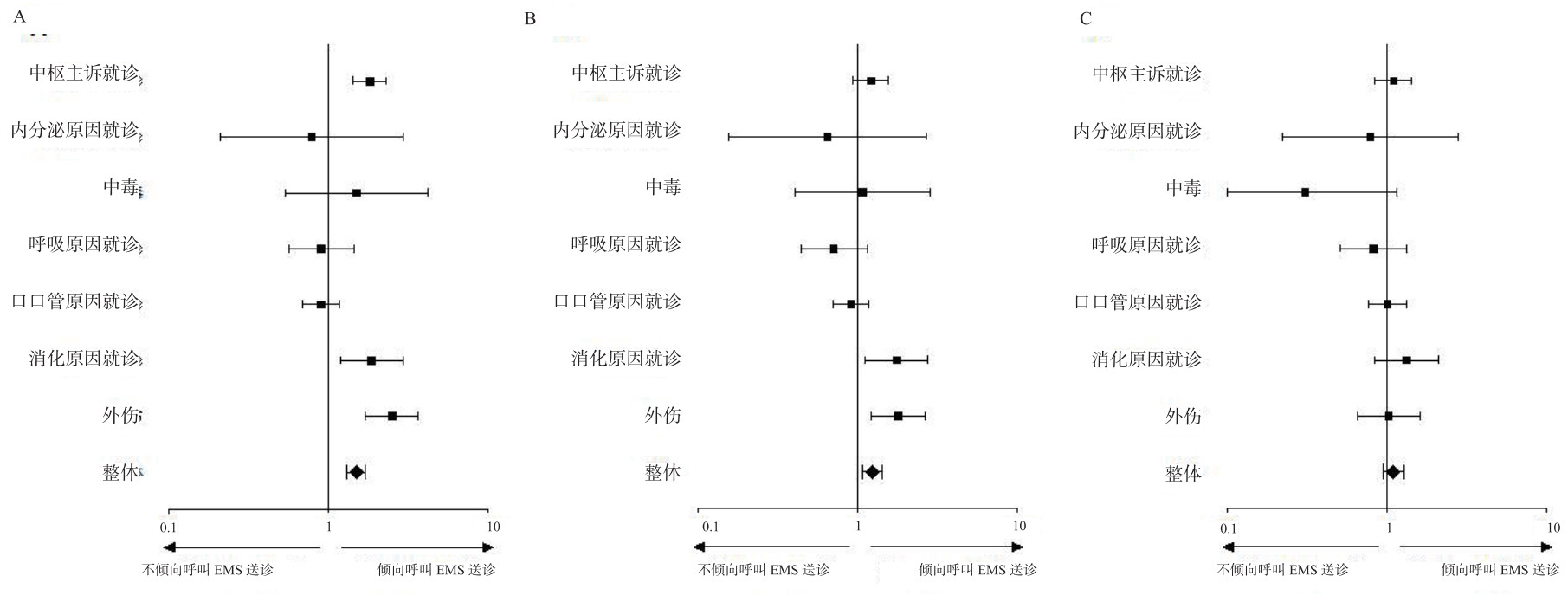 中枢主诉就诊 | 1.10 | 0.85~1.44 | 0.73 | 0.466 |