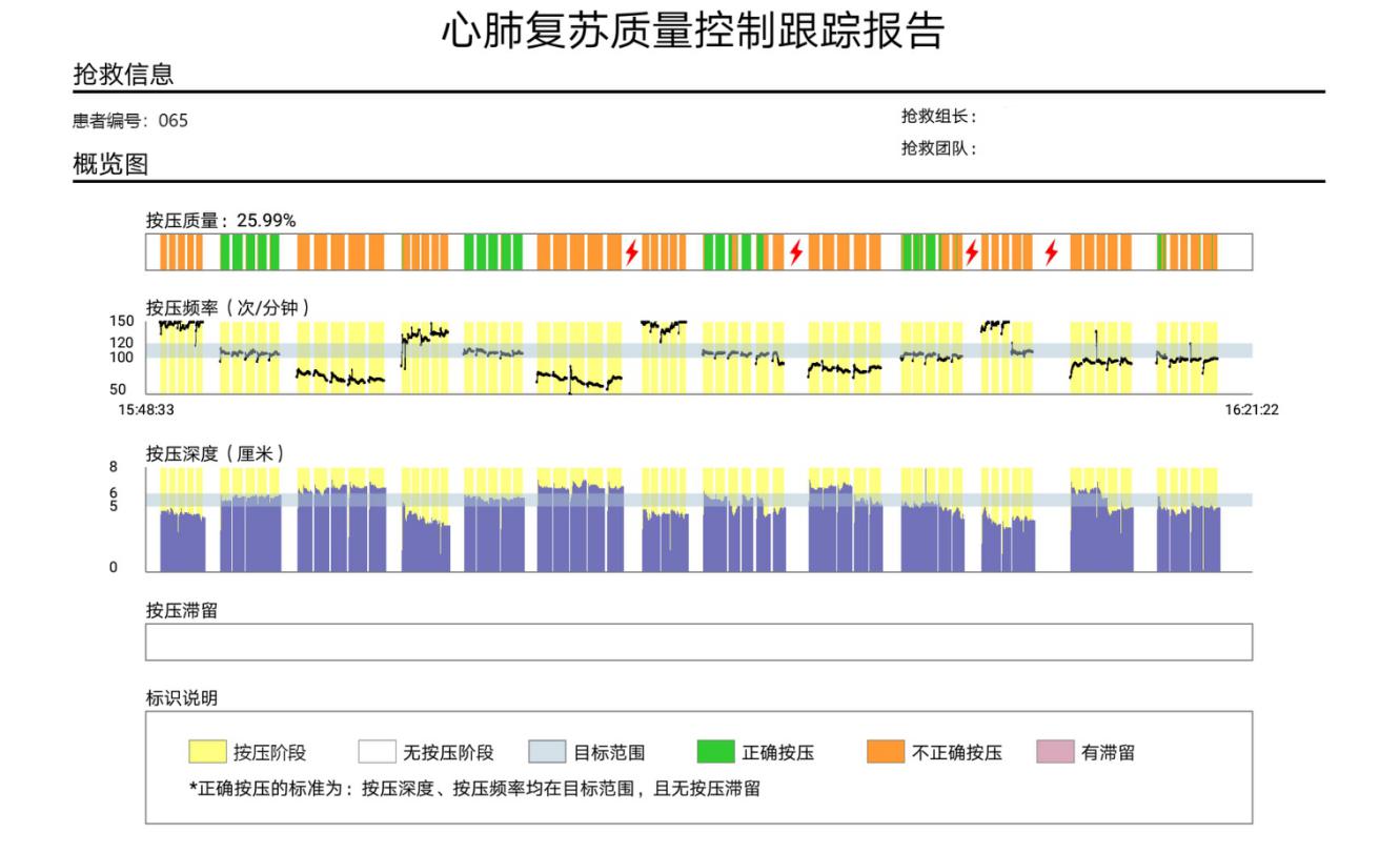 图 2 心肺复苏质量控制跟踪系统软件报告 Fig 2 Cardiopulmonary resuscitation quality control tracking system software report |