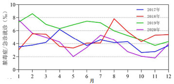图 2 2017—2020年ED就诊脓毒症患者比例构成变化趋势图 Fig 2 Trend chart of proportion composition of ED patients with sepsis from 2017 to 2020 |