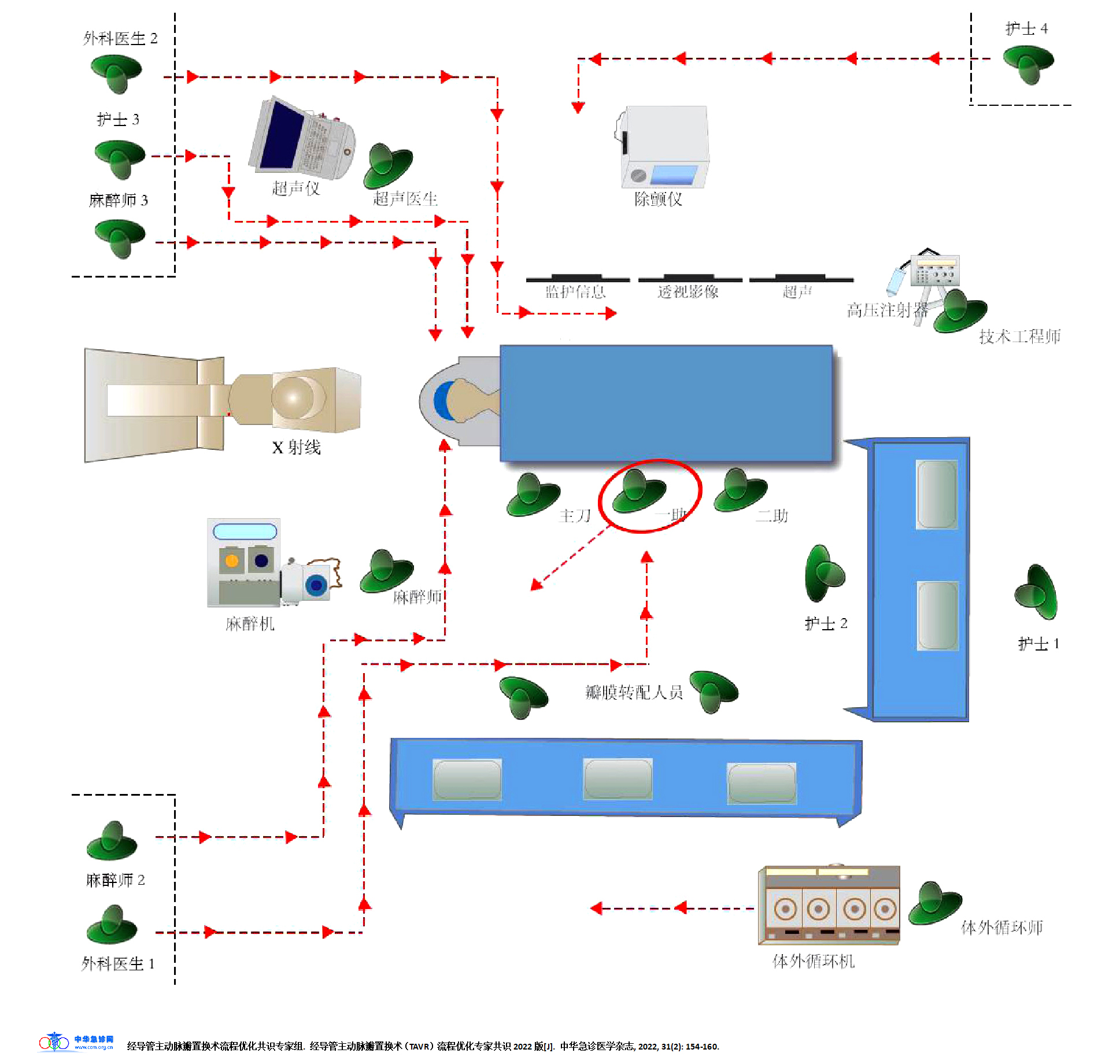 推荐意见6:TAVR在心导管室或杂交手术室进行,应合理布置导管室/杂交手术室格局,方便团队操作及抢救措施实施。