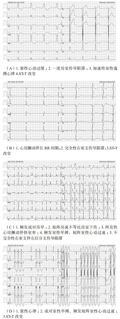 | 图 1 典型乌头类生物碱中毒后心电图表现 |
