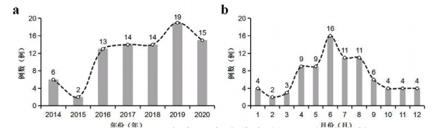 图 2 急性GBHs中毒患者中毒年份及月份分布情况 Fig 2 Year and month distribution of patients with acute GBHs poisoning |