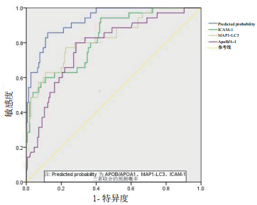 注: Predicted probability为Apo B/A1、MAP1-LC3和ICAM-1三者联合的预测概率 |
