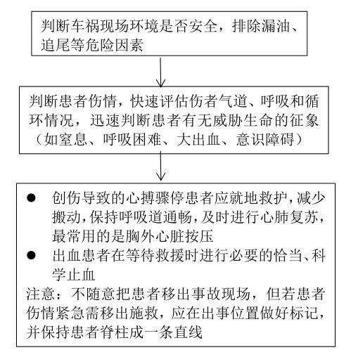 任何急救措施的实施首先要确保现场的安全及可操作性[37-38], "第一目击者"面对需要施救的患者时, 首先要对周围环境是否安全进行有效的评估, 然后再根据知识、经验等对现场情况做出快速地初步判断。"第一目击者"必须掌握评估急救环境风险的能力, 最大限度确保自己及他人在施救环境中的绝对安全。