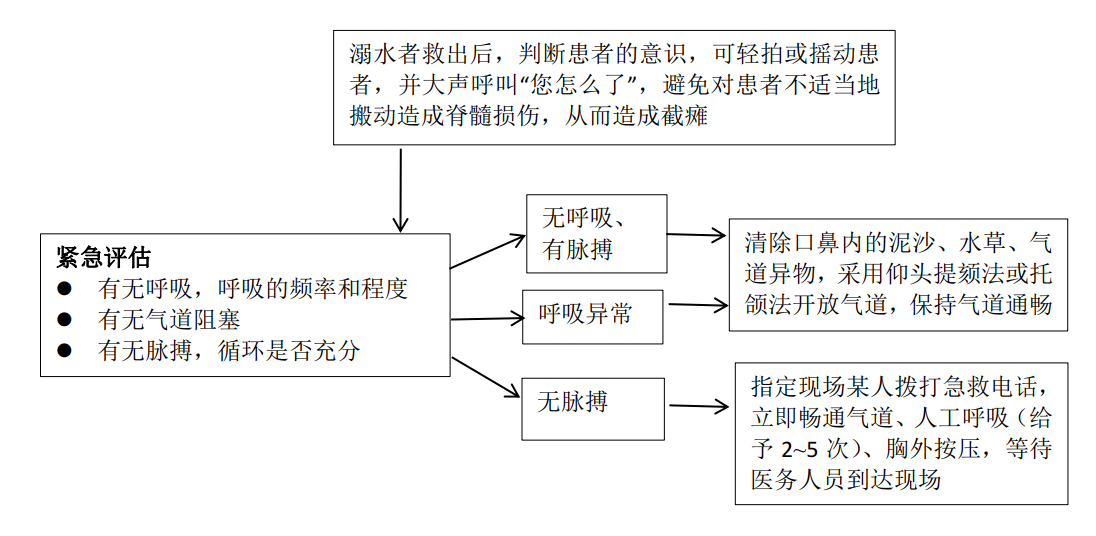 (2) 溺水事故现场应急处置流程[41-42](图 2);