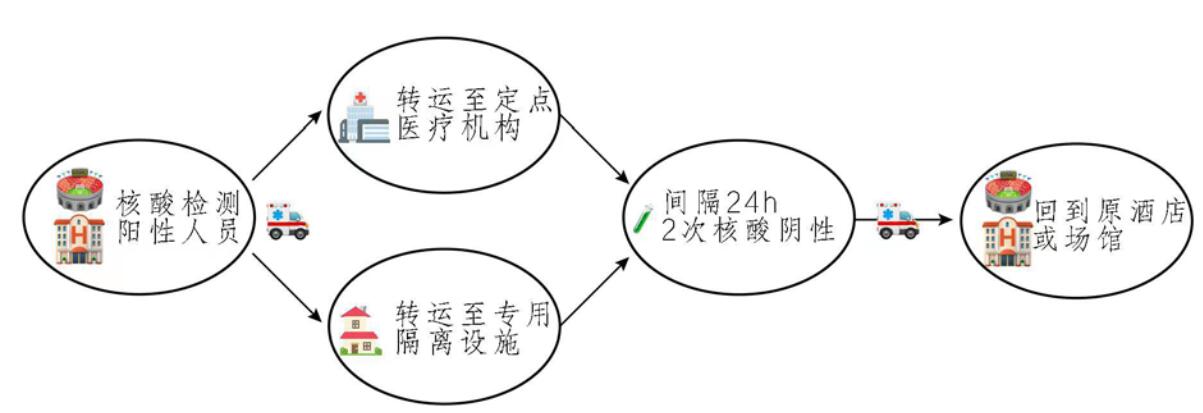 图 1 北京2022年冬奥会和冬残奥会闭环管理模式下新冠核酸检测阳性人员转诊流程图 |