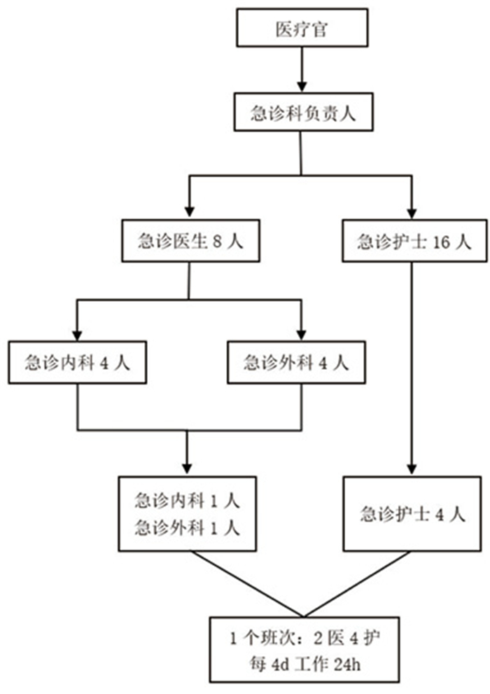 | 图 1 延庆冬奥村综合诊所急诊科人员配备和排班模式 |