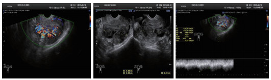 图 1 经阴道的多普勒超声下UAVF特征性表现