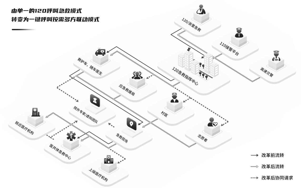 磐安县“医共体+数字120”通过数字化建设,运用AR、5G、物联网、GIS等技术,整合县域内急救资源,与公安、交通部门横向协同,在山区、海岛地区,地形复杂区域,快速对接急救资源,提高全域急救能力和突发事件应对能力。对于偏远山区、海岛具有高度的可复制推广性。