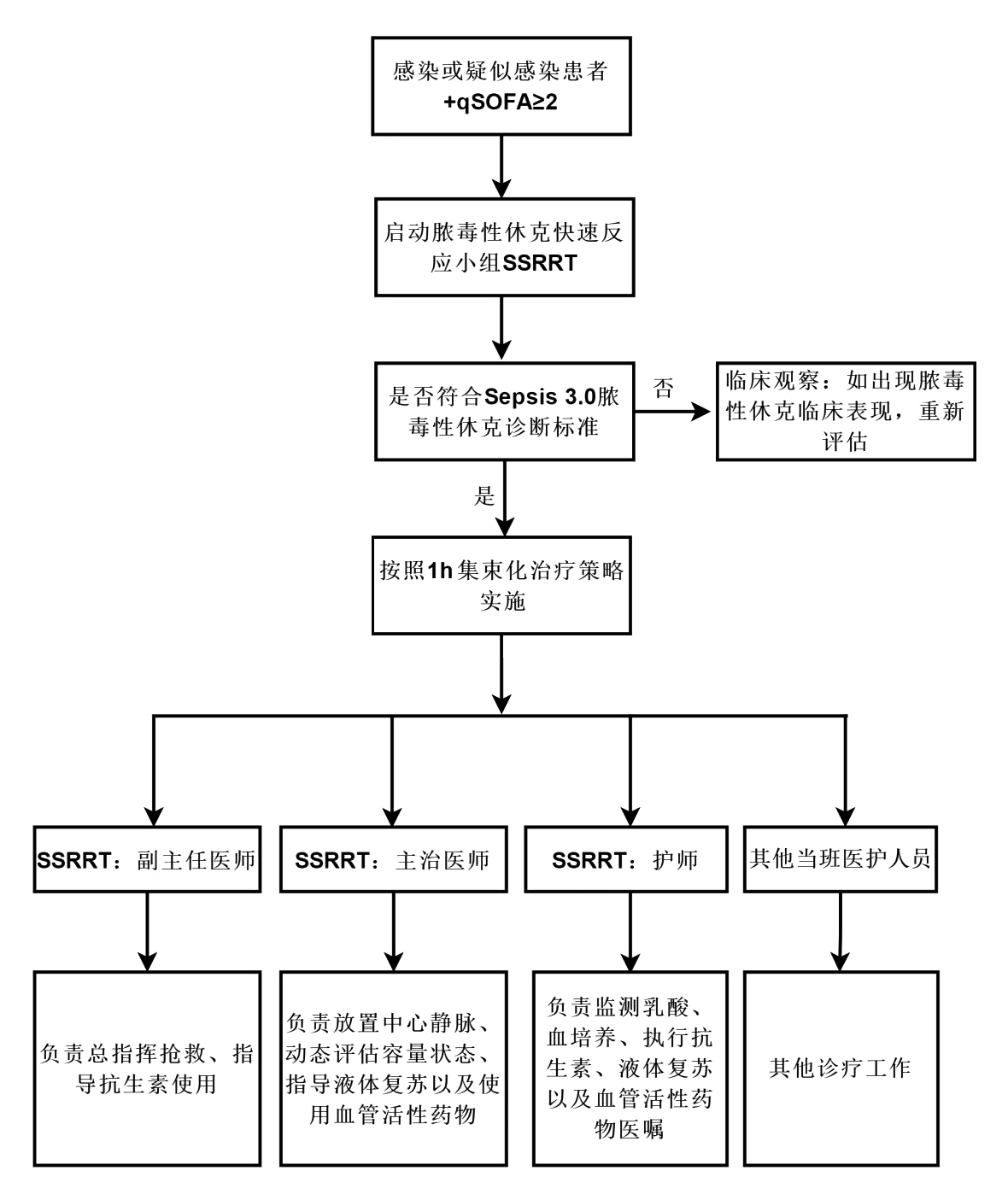 注:SSRRT为脓毒性休克快速反应小组,MAP为平均动脉压,ICU为重症医学科 |