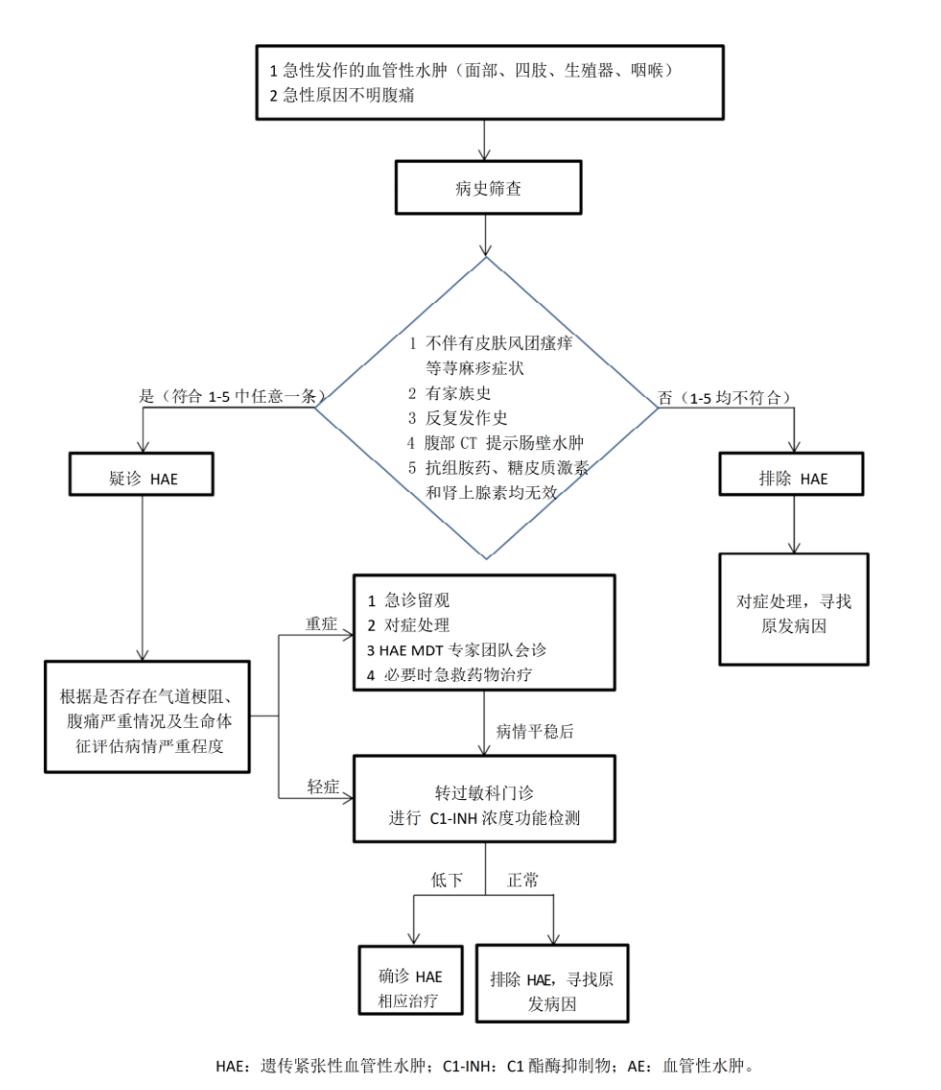 | 图 3 浙大二院遗传性血管性水肿(HAE)诊疗流程(急诊) |