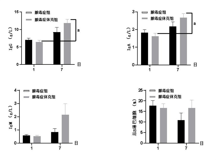 IgG(g/L) | 10.16±0.90 | 9.16±0.80 | 7.00±0.50ab | 6.43±0.47ab | 5.143 | 0.011 |