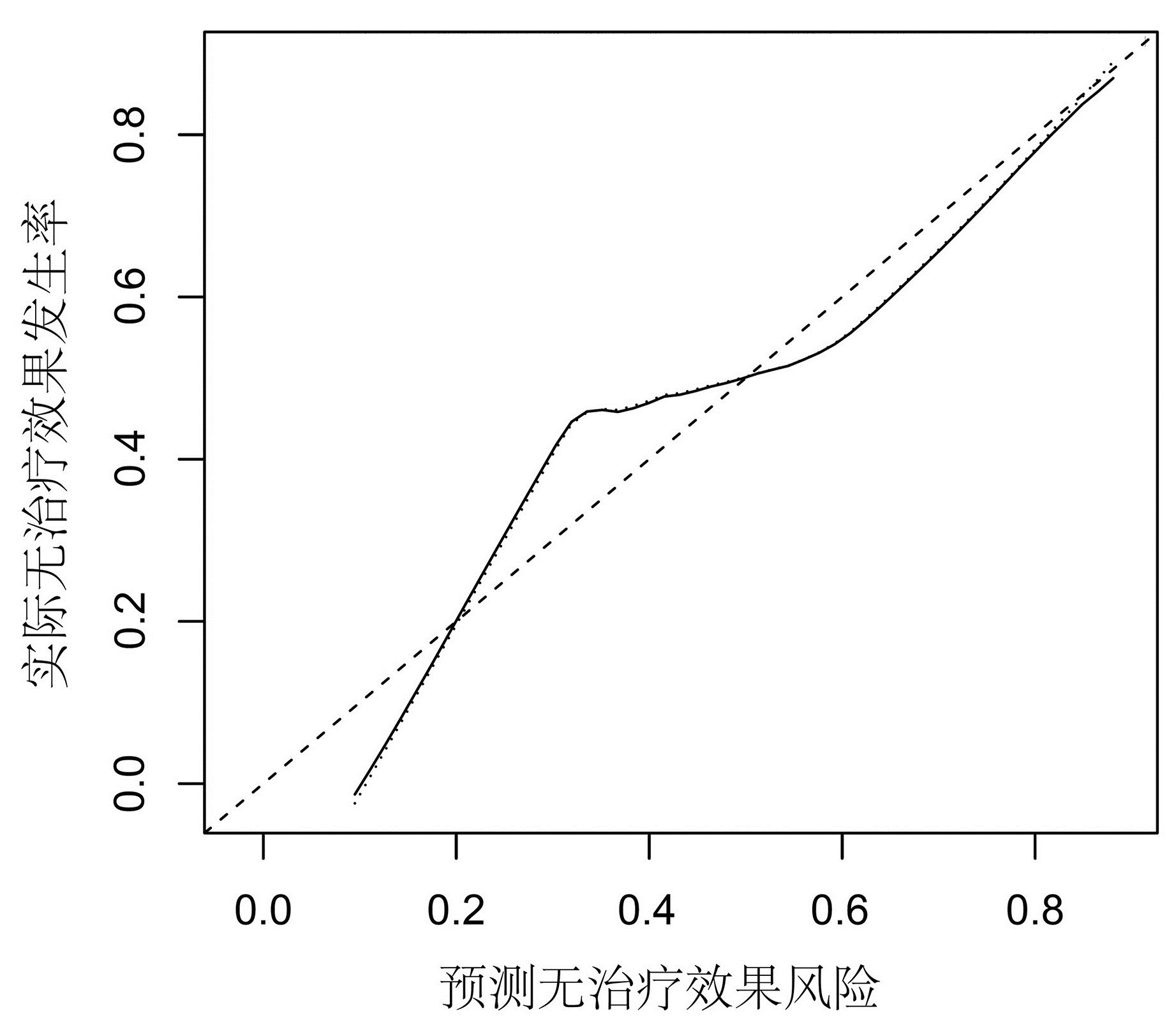 | 图 2 急性缺血性脑卒中患者静脉溶栓治疗效果预测模型的校准曲线分析 |
