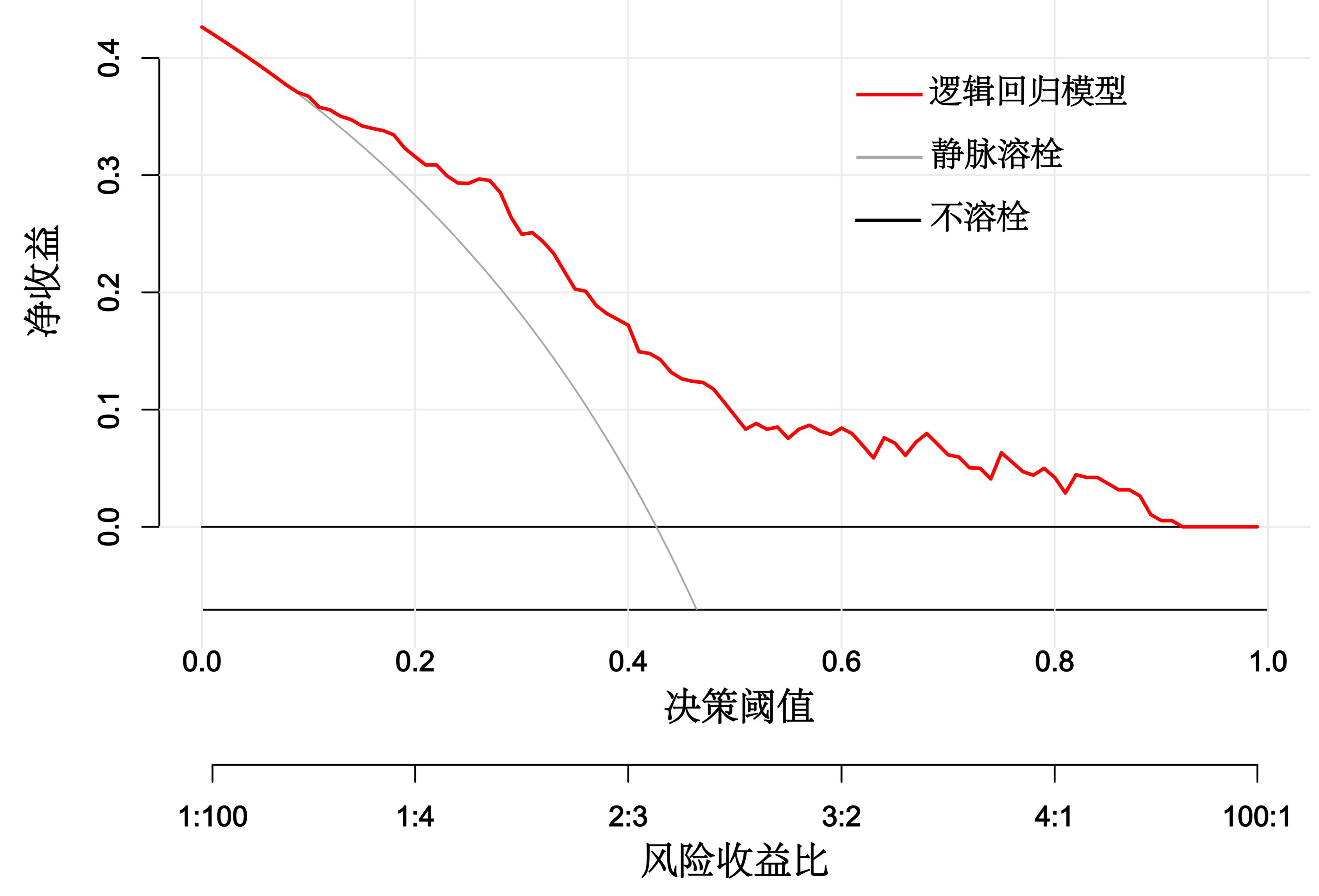 | 图 3 急性缺血性脑卒中患者静脉溶栓治疗效果预测模型的决策分析曲线结果 |
