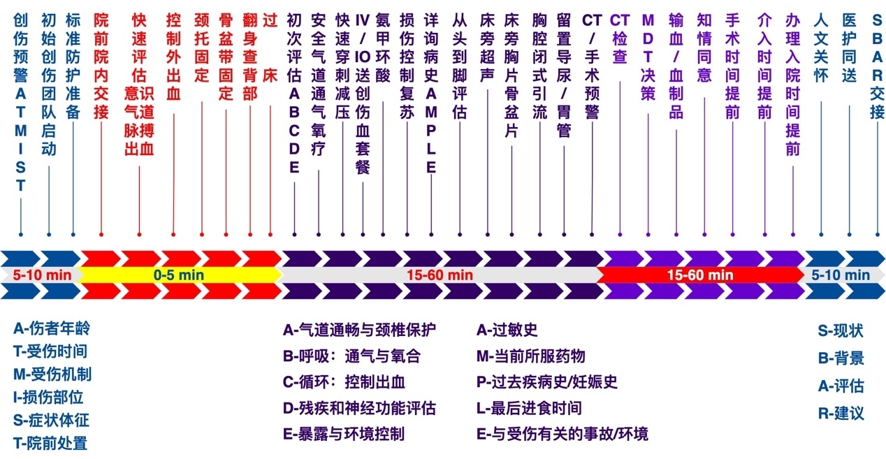 图 1 创伤复苏时间轴流程 |