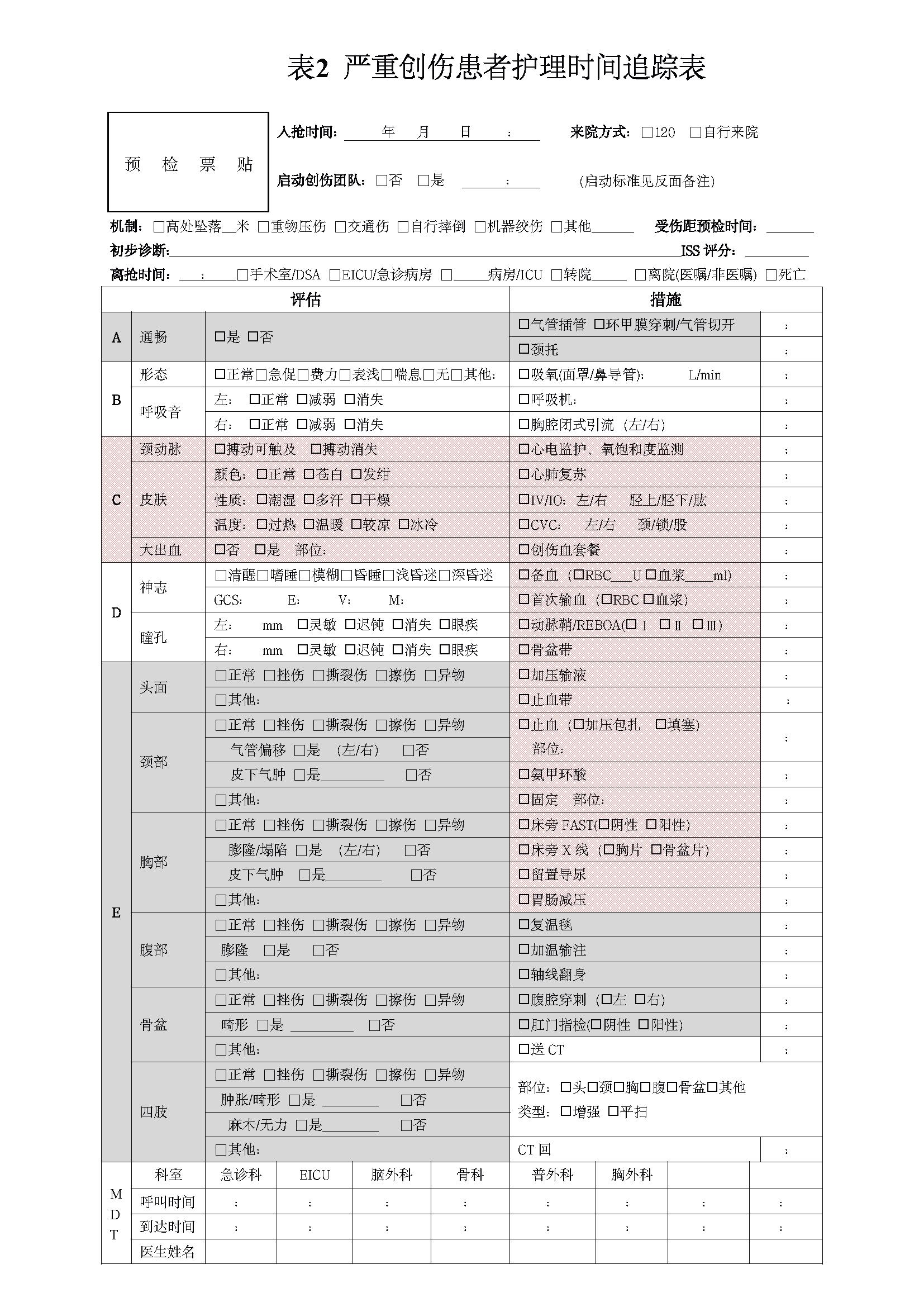 图 2 严重创伤患者护理时间追踪表 |
