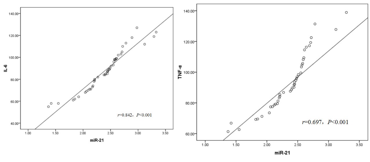 | 注:miR-21为微小核糖核酸-21,TNF-α为肿瘤坏死因子-α,IL-6为白介素-6 | ||||